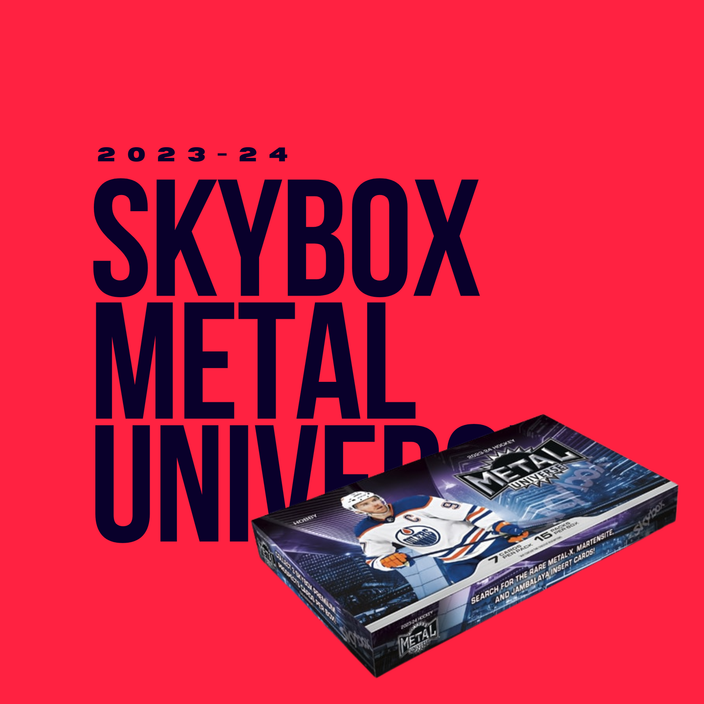 Introducing the 2023-24 Upper Deck Skybox Metal Universe Hobby Box, a premium offering for collectors and sports trading card enthusiasts alike. This striking box brings the excitement of the hockey card collecting experience right to your fingertips. With its vibrant design and innovative card technology, the 2023-24 Skybox Metal Universe Hobby Box stands out as a must-have for both seasoned collectors and newcomers looking to delve into the thrilling world of hockey cards.