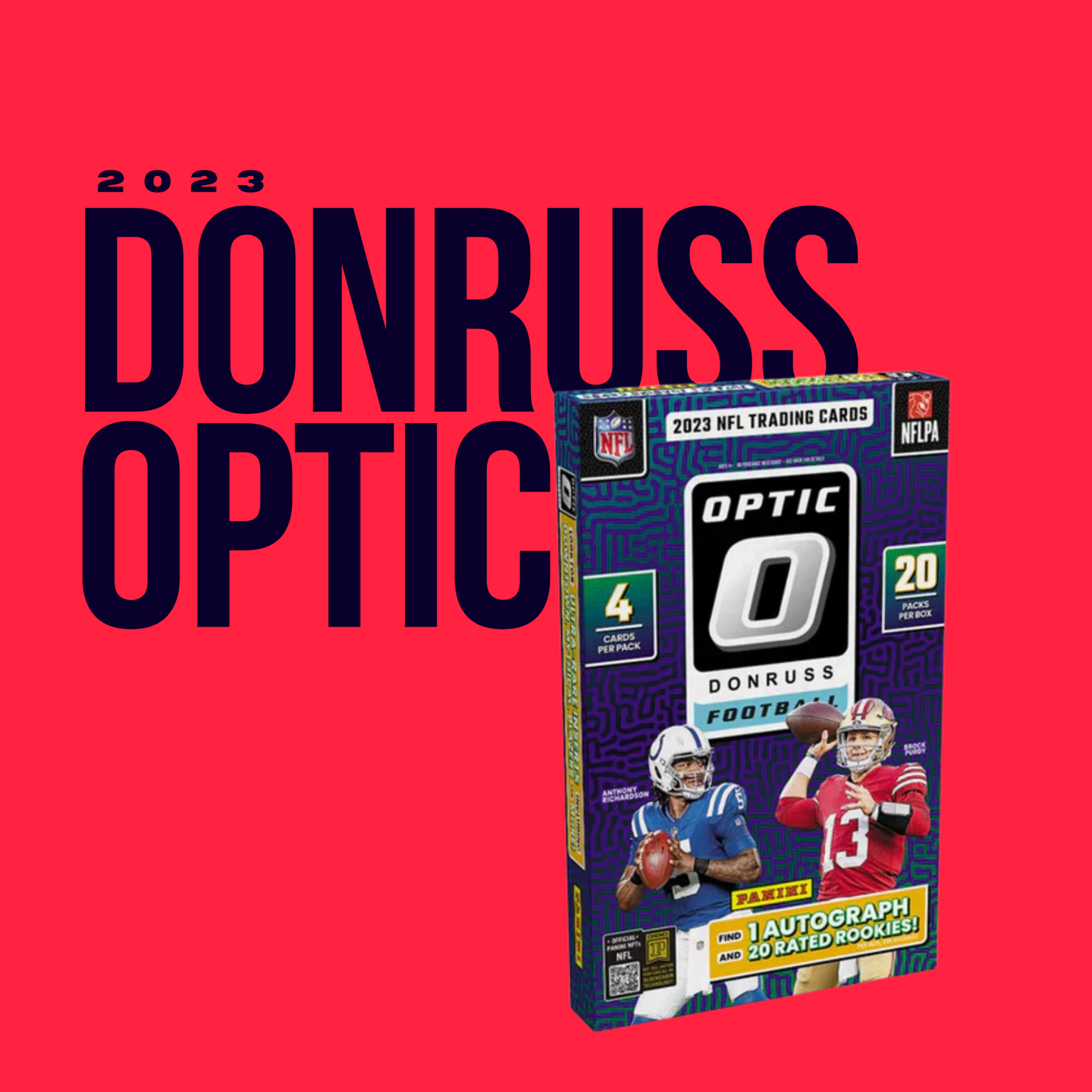 • The flagship Donruss Football epically meets Opti Chrome technology with 2023 Donruss Optic Football, a dynamic product featuring Donruss’ trademark bells and whistles such as Rated Rookies, My House!, Downtown and more.