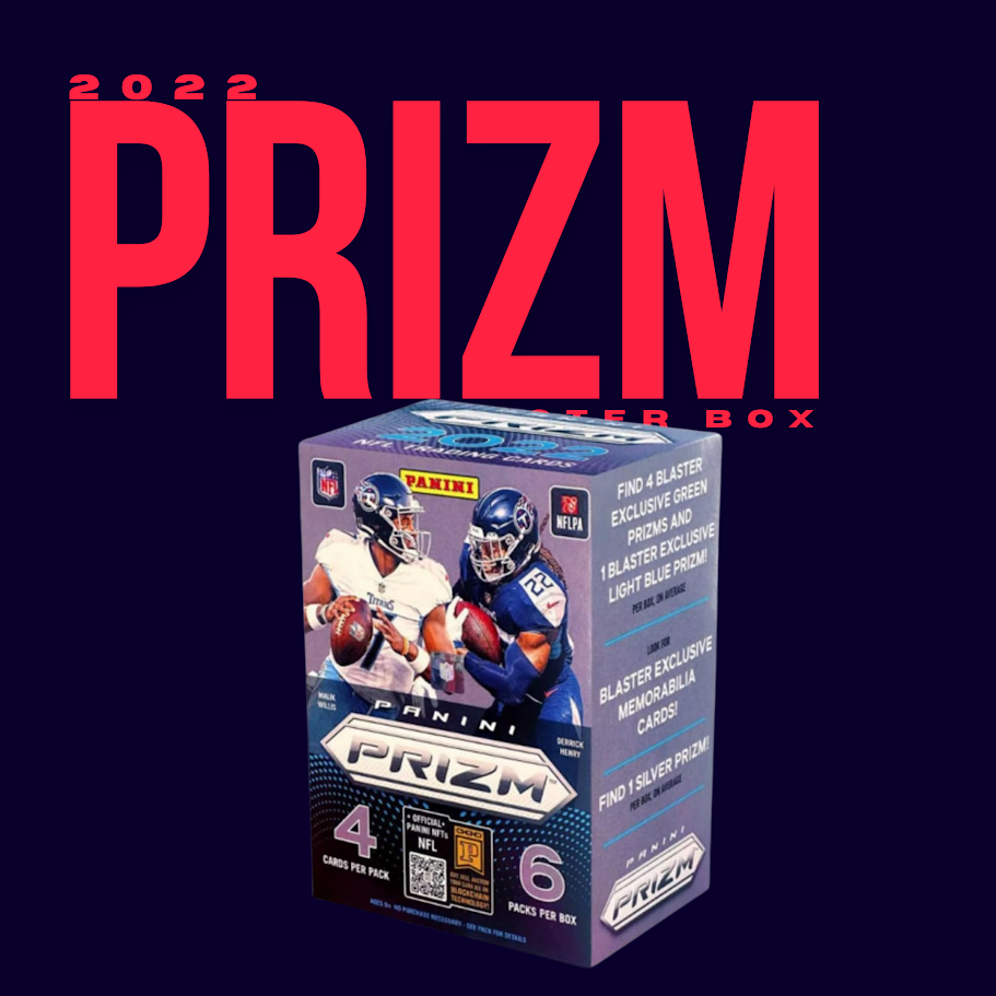 The 2022 Panini Prizm product line continues to build on the brand's legacy of quality and visual appeal. Known for its vibrant designs and innovative printing technology, the Prizm series is synonymous with both rarity and desirability among collectors. Each blaster box includes 6 packs, with 4 cards per pack, delivering plenty of opportunities to uncover great additions to your collection.