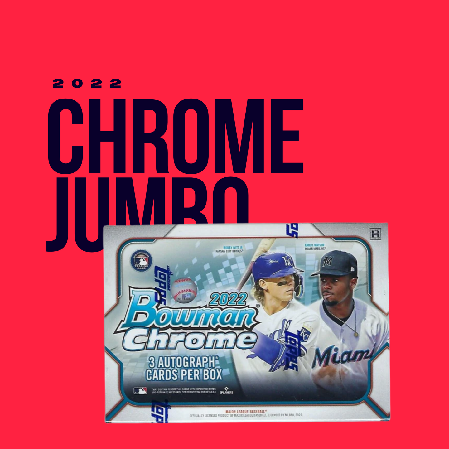 Introducing the 2022 Bowman Chrome Baseball Jumbo Box, an exciting addition for collectors and baseball aficionados alike. This product is a premier offering in the world of sports trading cards, characterized by its striking designs, coveted rookie cards, and the allure of potential autographs. As one of the most sought-after releases each year, the Bowman Chrome line continues to elevate its status as a staple in any serious collector's portfolio.